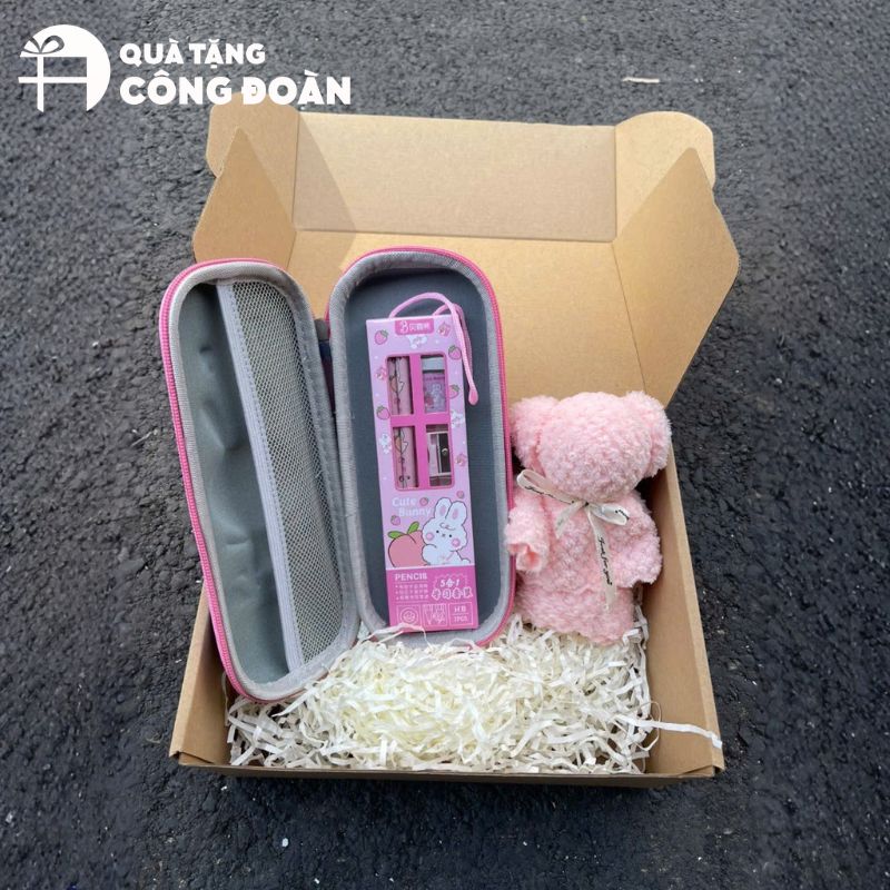 Công đoàn có thể tặng những cây bút bi riêng hoặc bút bi kèm hộp đựng bút để các em có vật dùng đựng dụng cụ học tập càng hay.