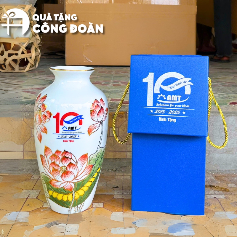 Bình có thể được trưng bày trang trọng tại văn phòng làm việc hoặc phòng họp, vừa là vật trang trí sang trọng, vừa mang lại thông điệp chúc phúc cho người nhận.