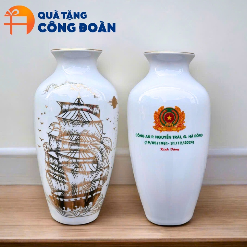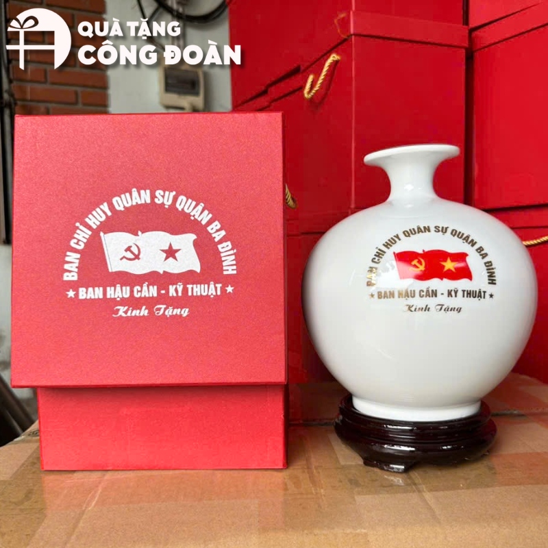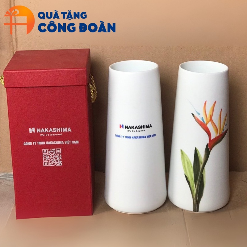 Các mẫu lọ hoa sứ trắng, lọ hoa in decal vàng, hay lọ hoa vẽ tay là những lựa chọn phổ biến, được nhiều đơn vị tin dùng.