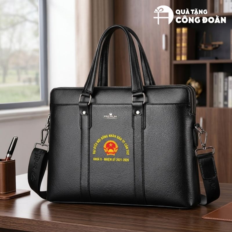 Cặp da đựng tài liệu là món quà mang tính biểu tượng, thể hiện sự trang trọng và phong thái chuyên nghiệp của người cán bộ.